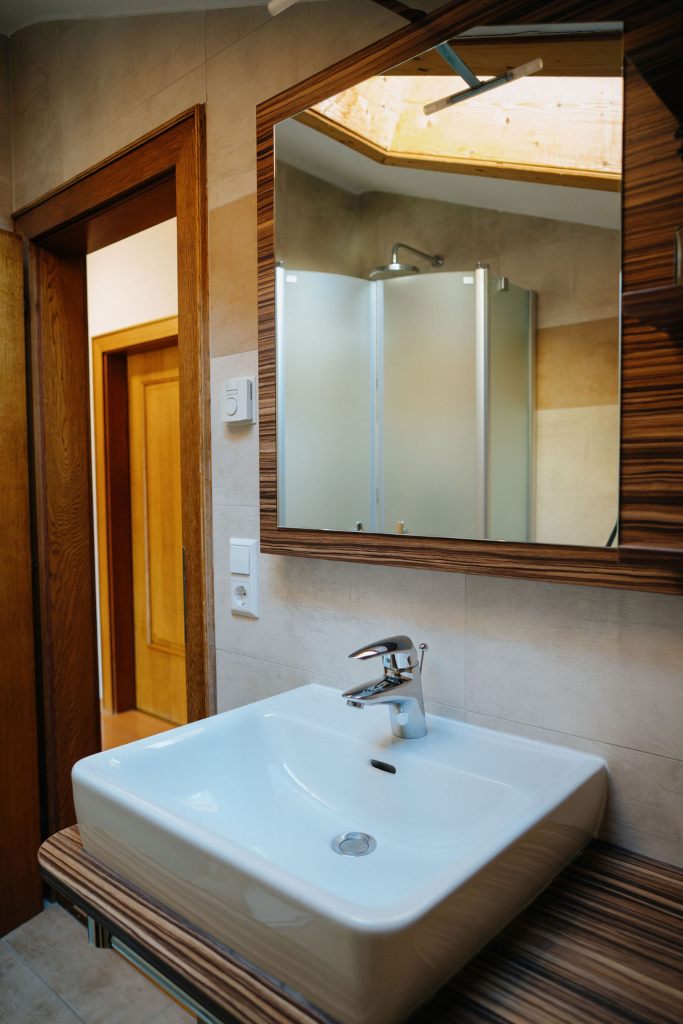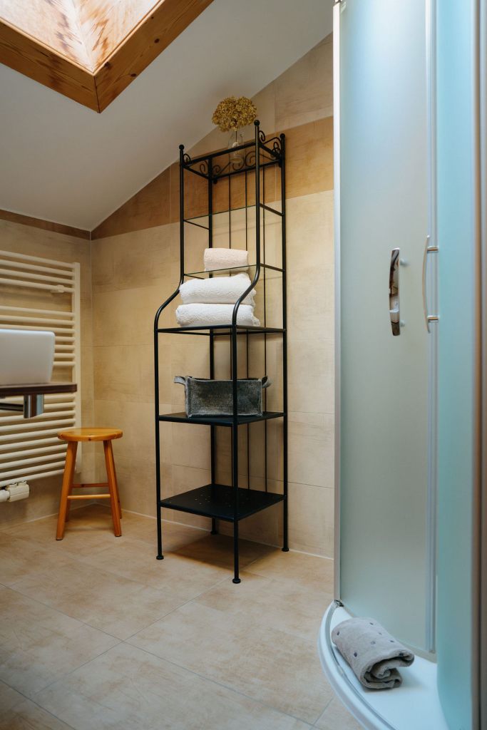 - Badezimmer mit Dusche und separatem WC, Haarföhn